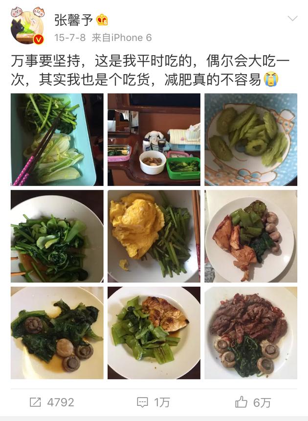 同样让人有些“心疼”的就是张馨予了,为了减肥坚持每顿吃蔬菜,偶尔才能大吃一次,不过仔细看来营养均衡许多哦。