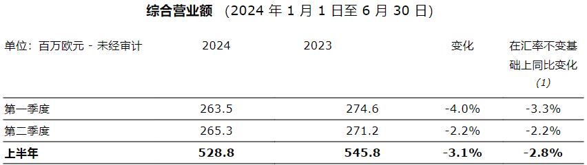 2024 年上半年销售额达 5.288 亿欧元