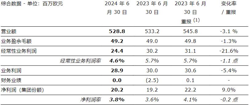 息税前利润下降 1.3% 至 4920 万欧元,经常性营业利润下降 21.6% 至 2440 万欧元。归属于集团的净利润达到 2020 万欧元,净利润率为 3.8%,与去年同期基本持平。