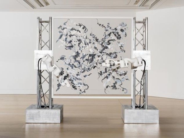 Sougwen Chung,《SPECTRAL - Oscillation 1》,2024 年,丙烯酸颜料、有机玻璃,采用 D.O.U.G._5 订制机器人系统制作,152.5 x 152 厘米 (图片由 Phillips 和 HOFA 提供)