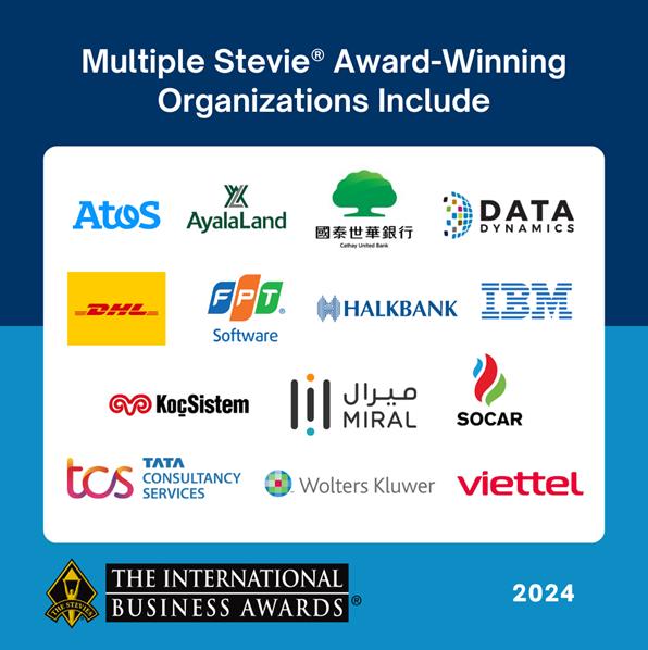 其他获得多项 Stevie 奖的公司还包括:土耳其伊斯坦布尔 Halkbank(18 项)、全球 Tata Consultancy(14 项)、越南河内 Viettel(13 项)、土耳其伊斯坦布尔 Akbank(13 项)、全球 DP DHL(13 项)、阿联酋阿布扎比 Miral(13 项)、全球 IBM(11 项)、中国台湾台北 Cathay United(10 项)、美国新泽西州 Upper Saddle River 镇 Data Dynamics(9 项)、菲律宾马卡蒂市 PLDT and Smart(9 项)、阿联酋阿布扎比Abu Dhabi Customs(8 项)、中国台湾台北Cathay Financial Holding Co. Ltd(8 项)、 中国深圳 China Resources Land Limited(8 项)、匈牙利布达佩斯 Lounge Group(8 项)、菲律宾马尼拉大都会区 Manila Electric Company(8 项)、土耳其伊斯坦布尔 Atos Customer Services(7 项)、土耳其伊斯坦布尔 BELBİM AŞ(7 项)、美国佛罗里达州种植园 Everise(7 项)、土耳其伊斯坦布尔 pladis(7 项)、美国加州北好莱坞 Russell Harris Event Group(7 项)、瑞士巴塞尔 Sandoz AG(7 项)、印度孟买 WNS(7 项)、全球 Wolters Kluwer(7 项)、中国香港 A.S. WATSON(6 项)、 土耳其 阿达纳 Beyaz Kağıt San. ve Tic. A.Ş.(6 项)、美国德克萨斯州欧文 Ceyhinz Link International Inc.(6 项)、中国上海 HKRI Taikoo Hui(6 项)、西班牙马德里 LLYC(6 项)、阿根廷布宜诺斯艾利斯 Pan American Energy(6 项)、加拿大不列颠哥伦比亚省温哥华 TELUS(6 项)、泰国曼谷 Thai Life Insurance Plc.(6 项)、墨西哥墨西哥城 ZIMAT(6 项)、美国佛罗里达州迈阿密 Mastercard(6 项)、美国加州圣何塞 Cisco Systems Inc(5 项)、菲律宾塔吉格市 DDB Group Philippines(5 项)、菲律宾塔吉格市博尼法西奥环球城 Dito Telecommunity(5 项)、印度诺伊达和美国加州圣克拉拉 HCL Software(5 项)、沙特阿拉伯利雅得 King Faisal Specialist Hospital & Research Centre(5 项)、土耳其伊斯坦布尔 KoçZer(5 项)、土耳其伊斯坦布尔 KoçSistem Bilgi ve İletişim A.Ş.(5 项)、土耳其伊斯坦布尔 SOCAR Türkiye(5 项)、越南河内 FPT(5 项)、加拿大安大略省 Sleepm Global Inc.(5 项)、美国加州都柏林 TriNet(5 项)以及土耳其伊斯坦布尔 Yapi Kredi Bank(5 项)。